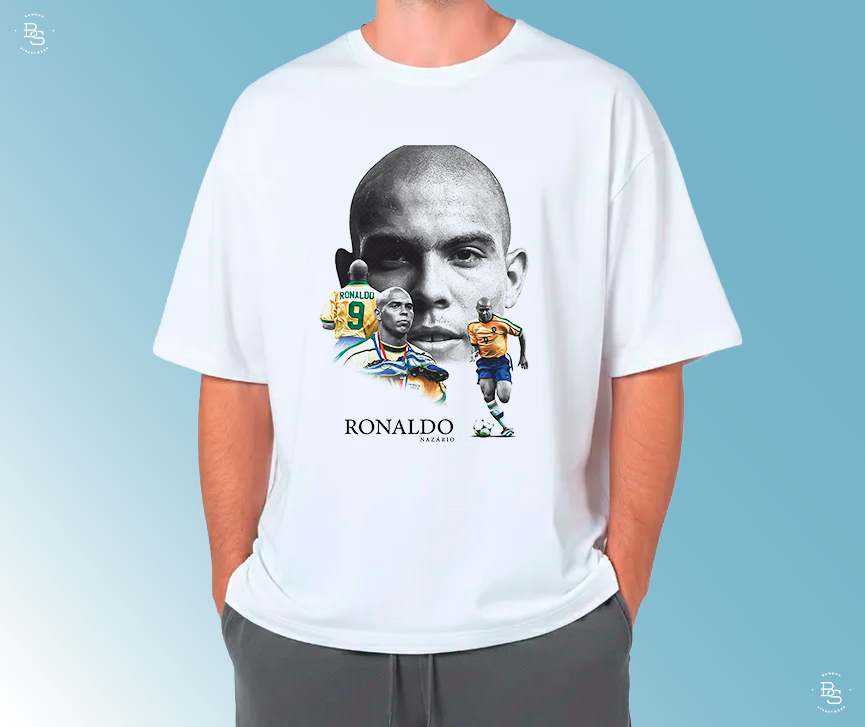 Sentí el poder de una leyenda con la remera oversize de Ronaldo Nazário. Esta prenda blanca, confeccionada en algodón premium de alto gramaje, combina una caída estructurada con un diseño artístico de alta definición. Ideal para quienes buscan una pieza de colección con el máximo confort del streetwear moderno.