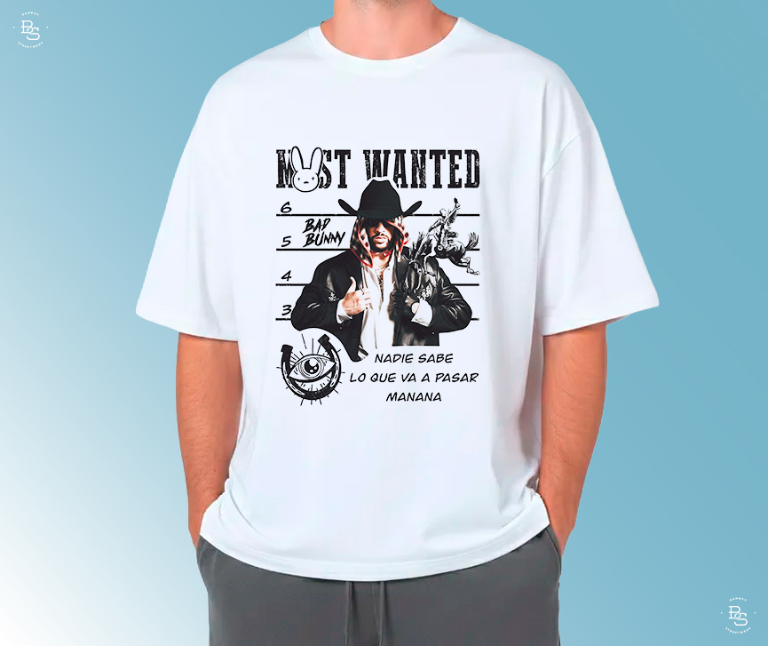 Inspirada en la estética del «Most Wanted», esta remera oversize de Bad Bunny. Confeccionada en algodón premium de alto gramaje, ofrece una estructura firme, fresca y con el calce holgado que define al streetwear actual. No es solo una remera, es la actitud de Benito en tu placard.